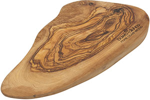 Mijn gedachten gingen naar die prachtige snijplanken die ik laatst in de winkel had gezien. Daar werd ik wél blij van. Alles dat van plantaardige oorsprong is raakt ‘in de stress’ van de aanraking met metaal. Tuinplanten uitspitten met een metalen spade is niet goed voor de plant. Glas en keramiek is neutraal, maar hout is eigen. Hout behoudt of verhoogt de vitaliteit vooral als het hout zelf een hoge energetische waarde heeft. En dat voel ik bij deze snijplanken. Deze snijplanken zijn afkomstig van oude olijfbomen die hun productiefunctie voor olijven verloren hebben. Door de karakteristieke groei van de olijfboom verkrijg je één van de hardste houtsoorten ter wereld met een heel bijzondere tekening. Elk product is verschillend van vorm en tekening en daarmee uniek. Bovendien is het olijfhout hygiënischer dan andere houtsoorten of plastic, doordat het van nature oliehoudend is.